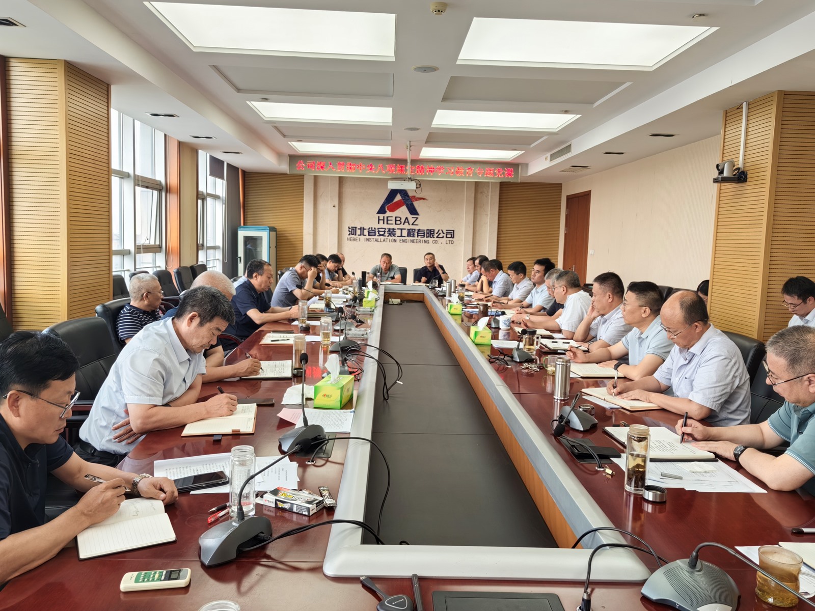 2025年9月3日,為紀(jì)念中國(guó)人民抗日戰(zhàn)爭(zhēng)暨世界反法西斯戰(zhàn)爭(zhēng)勝利80周年,河北省安裝工程有限公司積極組織職工集中觀(guān)看閱兵盛況直播。公司機(jī)關(guān)及各分公司、項(xiàng)目部共計(jì)2000余人通過(guò)多種方式同步參與,共同回顧歷史、緬懷先烈、展望未來(lái)。上午9時(shí),習(xí)近平總書(shū)記發(fā)表重要講話(huà),9時(shí)19分大閱兵正式開(kāi)始,公司機(jī)關(guān)及各分公司、項(xiàng)目部會(huì)議室座無(wú)虛席,職工們們整齊地坐在屏幕前,神情莊重地注視著電視畫(huà)面。在閱兵式過(guò)程中,
